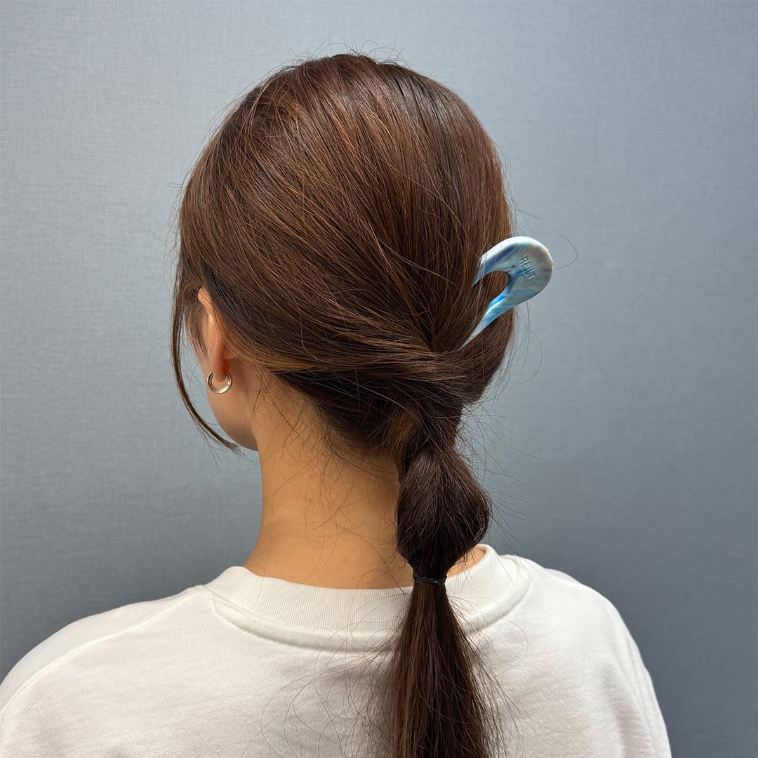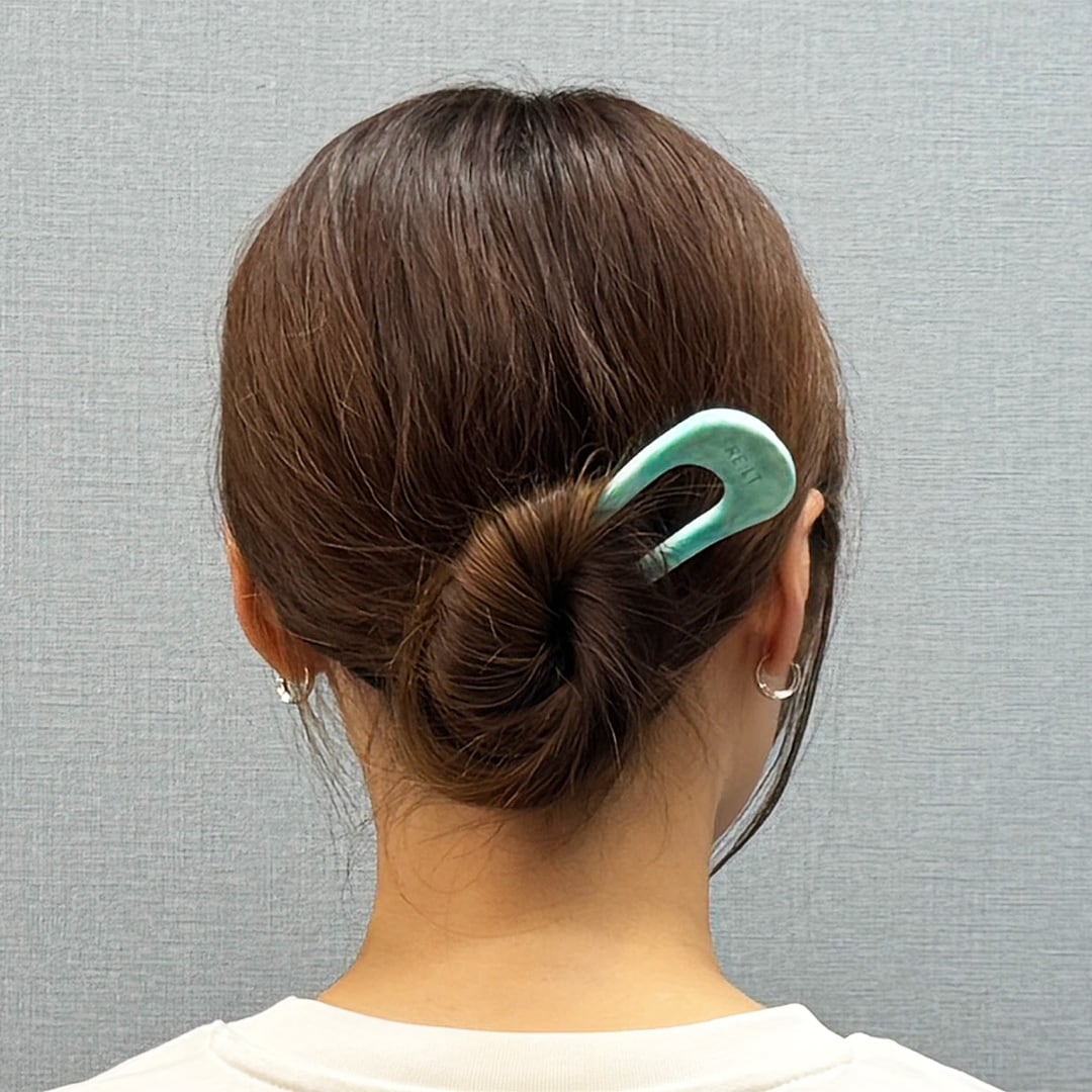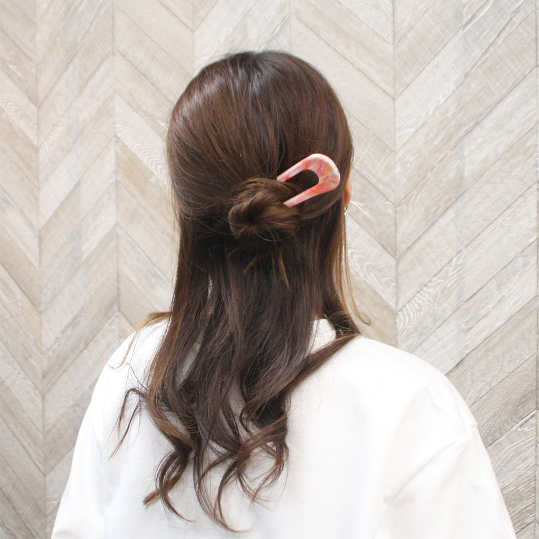 お団子やまとめたヘアスタイルに差し込むだけで簡単アレンジができます。